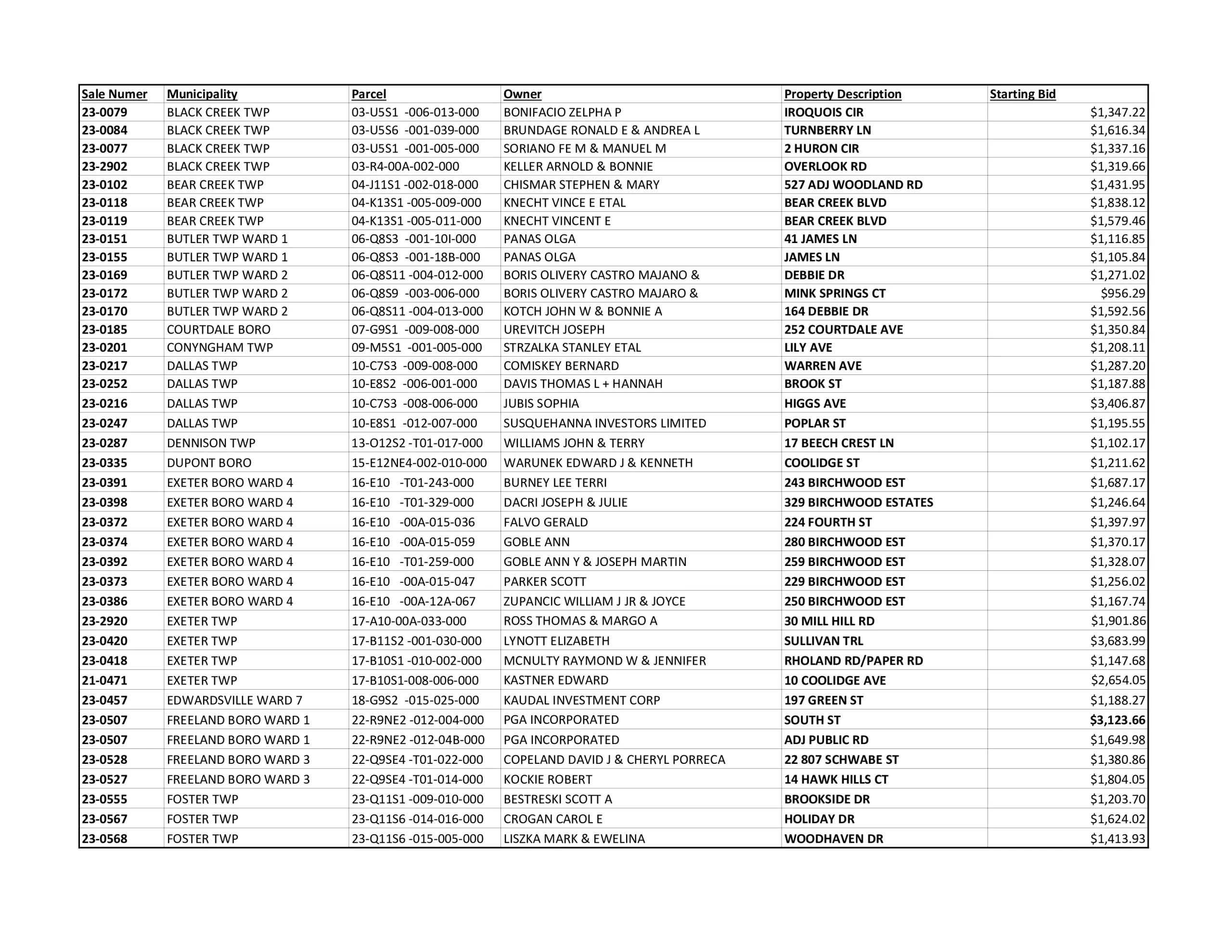 Special Upset Sale - Thursday, April 23rd, 2026, at 10 am Judicial Sale - Thursday, August 6th, 2026, at 10 am Upset Sale - Thursday, September 24th, 2026, at 10 am